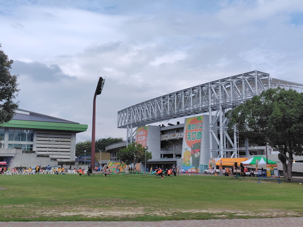 かなり早く、ニンニジアスタジアムに着いてしまったので、出店とか、スタジアムの周りをうろうろしていたら、ブッチャー並みの屈強な愛媛サポに話しかけられた。