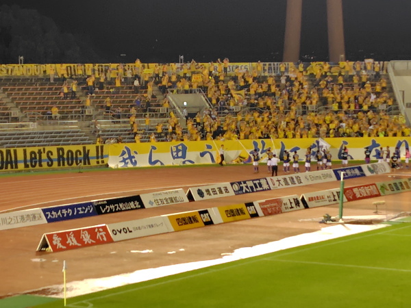 試合を待ってる間には、スタジアム外の芝生で、氣志團のスウィンギン・ニッポン、MONKEY MAJIKの「空はまるで」の曲が流れたので、そんなに仙台に気を使わなくても、と思っていたが、スウィンギン・ニッポンは、愛媛の方でも、チャントに使ってるとかw