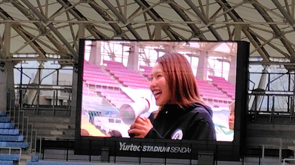 試合終了後、長いリハビリを経て、海外移籍を視野にチームを離脱するという、廣澤真穂選手の明るい挨拶があった。